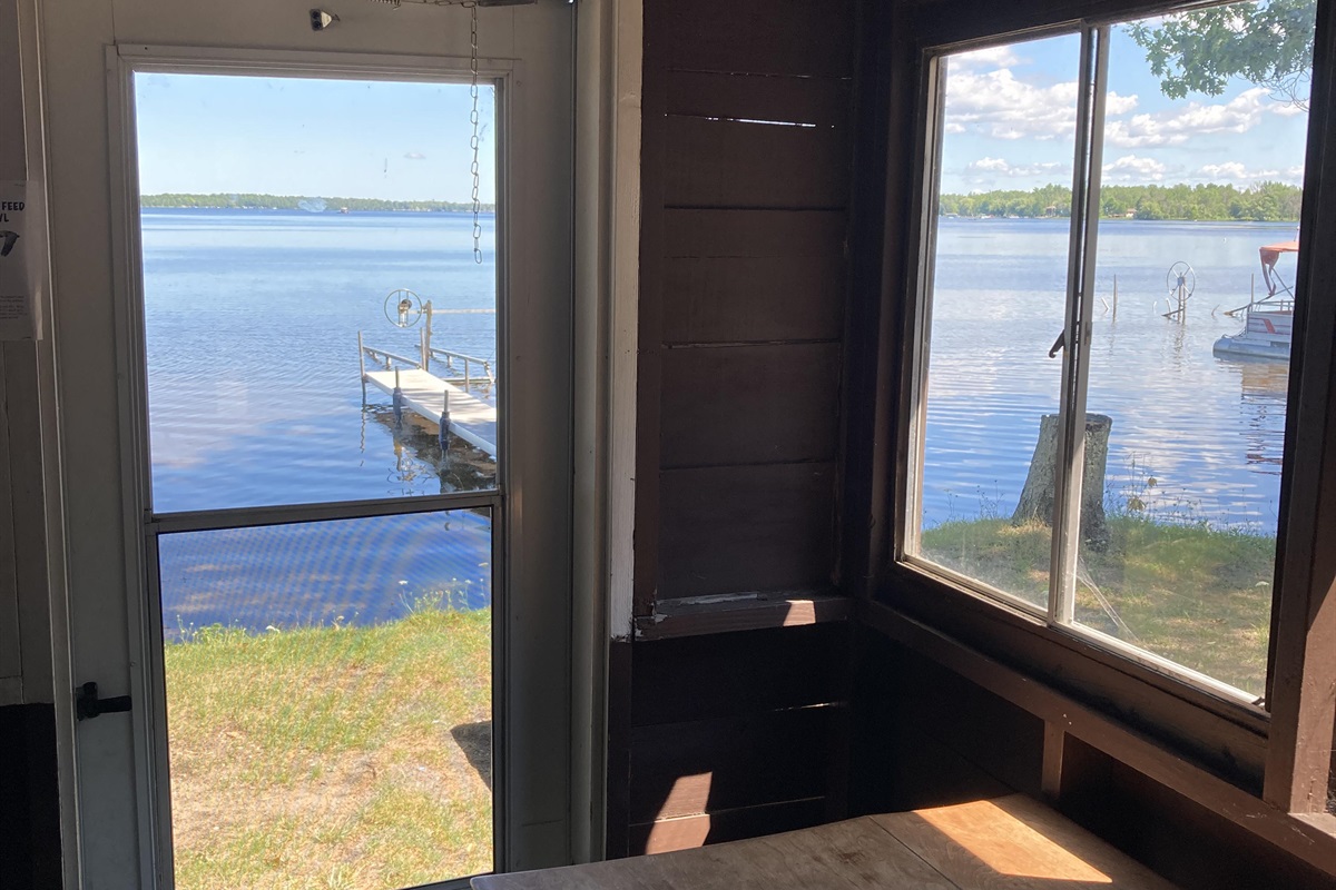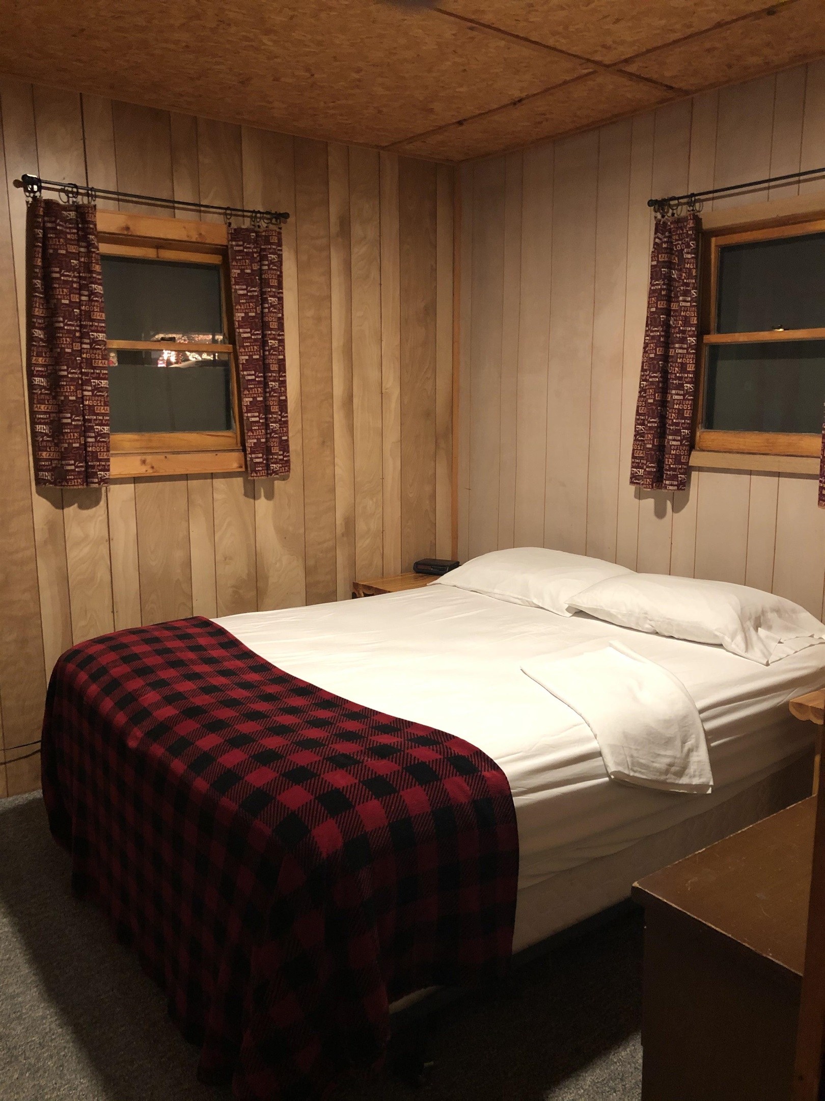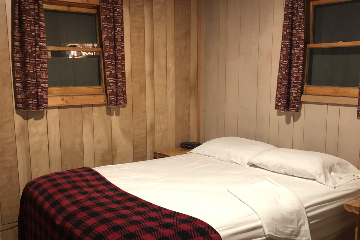 The listed rate reflects the price for 4 adults or a family with children up to 6 people total. Additional adults beyond 4 will incur additional charges. This cabin has a sleeping capacity up to 6 people utilizing 2 bedrooms, each with a queen size bed and a futon in the living room. There is 1 electrical outlet next to the bed in one of the bedrooms, the other bedroom does not have an electrical outlet. Other electrical outlets are minimally located throughout the cabin. This cabin has a kitchen with everything to cover your basic needs, a dinning space and a simple bathroom that includes a warm shower. The spacious 13'x7' enclosed porch overlooking the lake is the perfect place to enjoy your coffee and watch the morning sunrise.